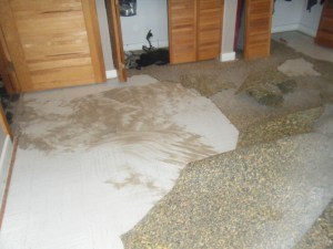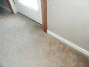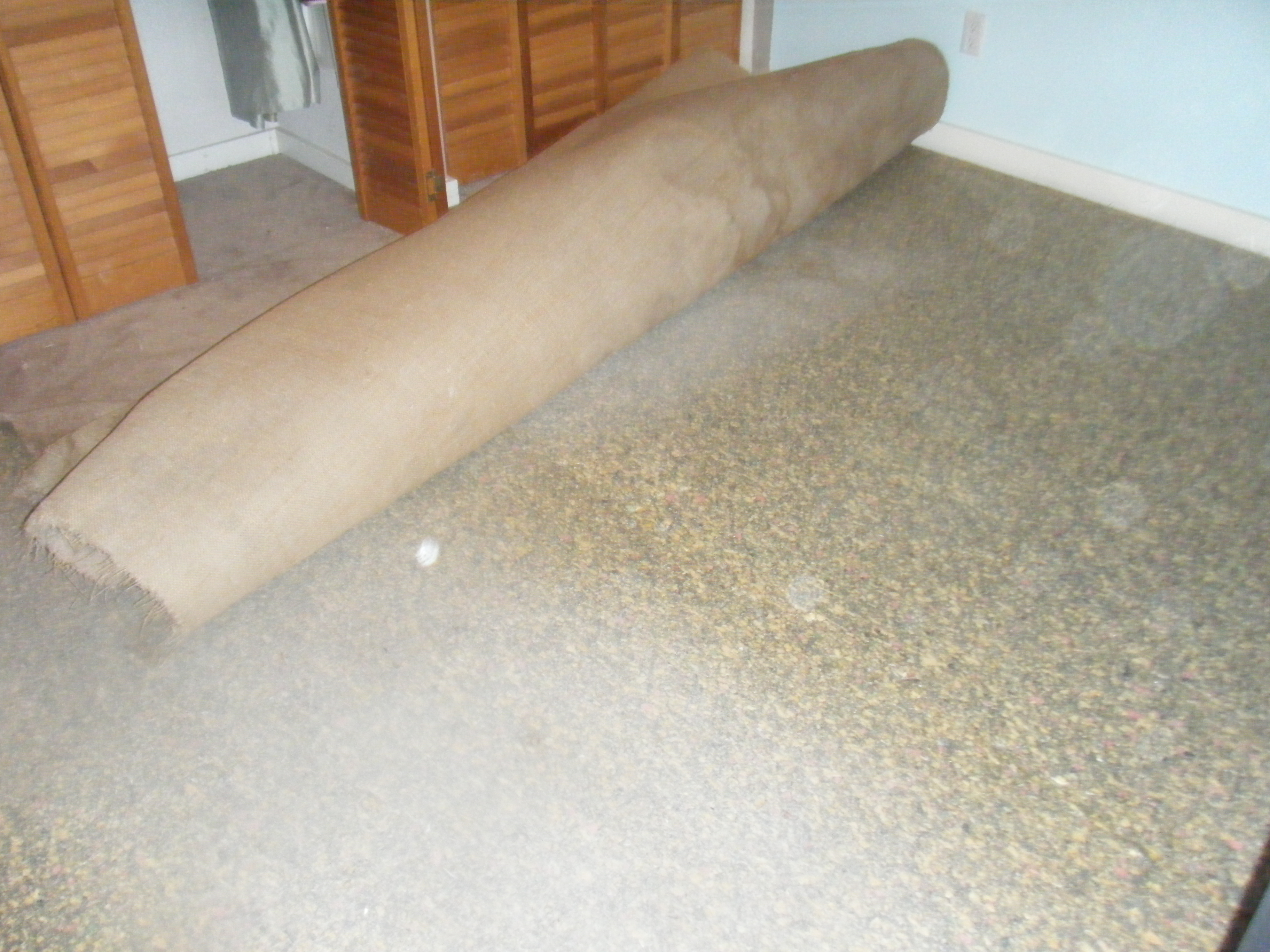 It seems that the carpet padding had disintegrated in many spots and left piles of dirt/dust/nastiness in its place. I’m really proud of myself for not throwing up when I saw what was under the carpet.  Instead, I went to work.  Having seen what was there, I certainly could not let it stand! I leapt into action! I visited the Internet and learned that to remove the carpet, I should employ a “carpenter knife” so that I could cut the carpet into smaller pieces, which would have made it easier to remove. That would have been nice. Instead, I just started to rip and rip and tear and tear.