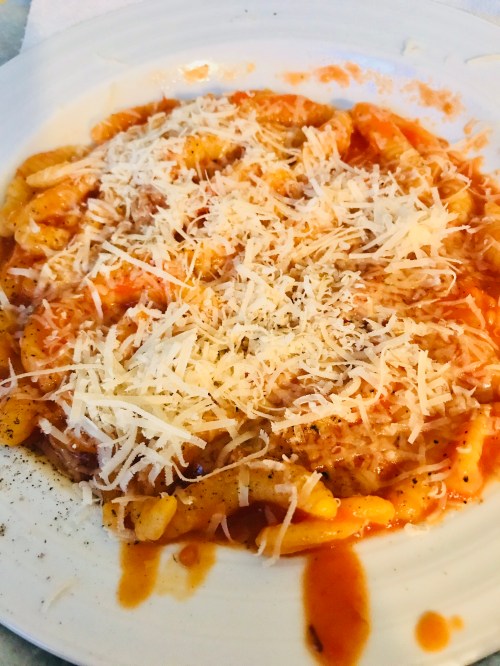 Well, I totally nailed it with the Big Mouth Pasta order. We dug Into the gnocchi and its accompanying tomato sauce (Aaron shaved some delightful cheese on top – it was vegan, as sent.)