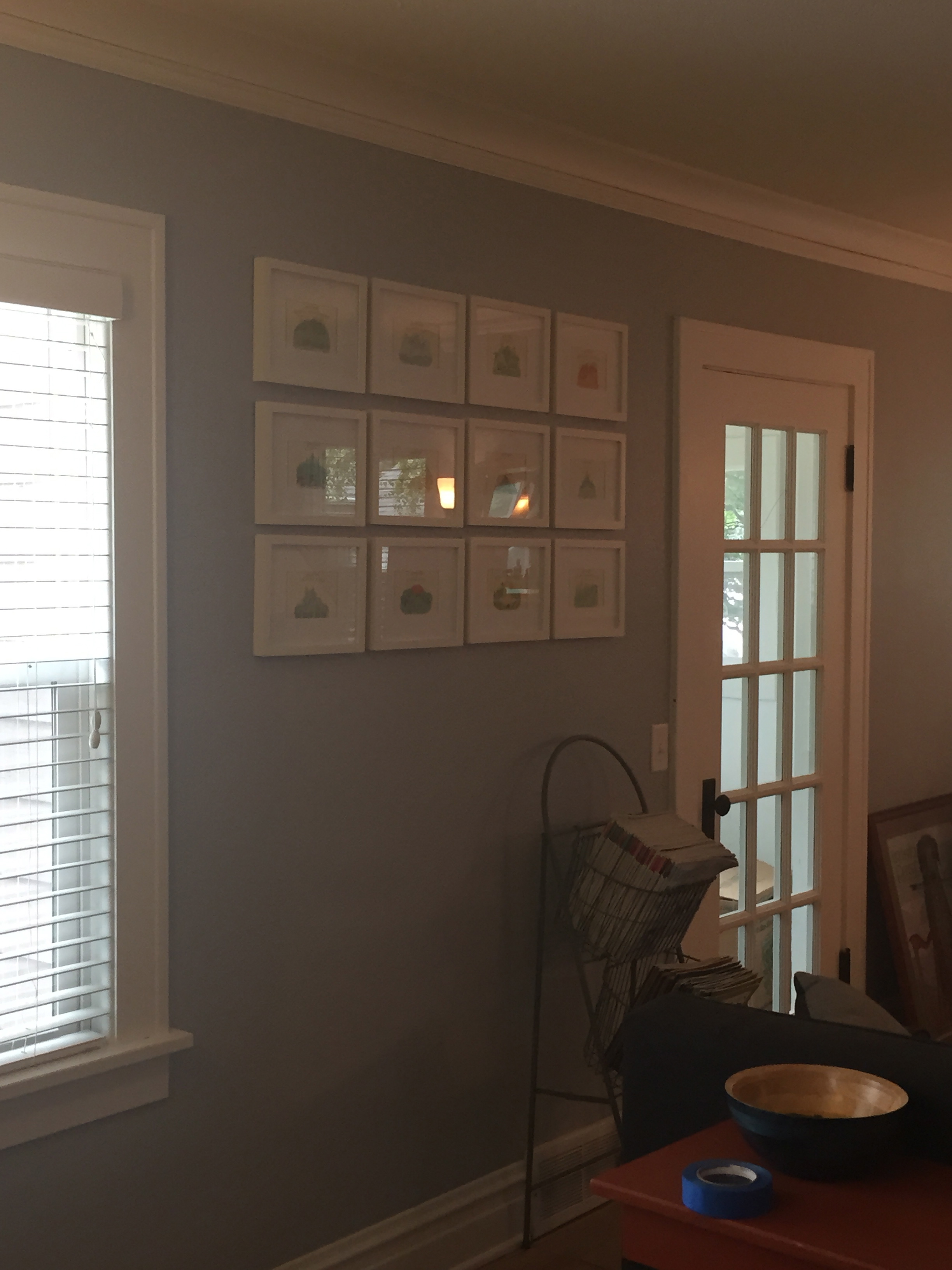 And then I start measuring. And marking the wall. And using the level. And making marks over my marks. And remeasuring. And then I start drilling. And placing screws. And then remeasuring. And taking screws back out. Basically, it’s a disaster. And then it’s so far from perfect. For a zillion reasons. But I ended up with this and I’m declaring it a success. Even if I think they’re a little too high. And you can totally see all the ways that they’re just still not (!!!!!!!!!!!) level.