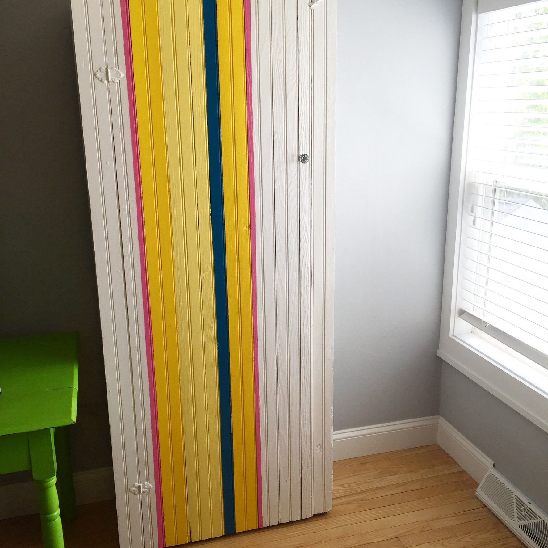 And finally finished painting a cabinet we bought from an antique store two years ago. Yikes. Of course, there’s no before picture, but imagine it a very dark, very rough wood and you’ve got it.